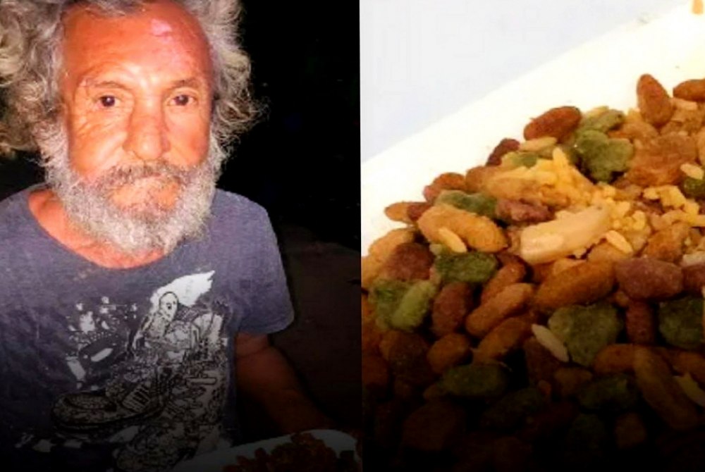 “Hoje encontrei um senhor sentado do lado de fora da minha casa, pedindo um pedaço de pão para acompanhar a ‘comida’ que alguém deu a ele. É uma verdadeira falta de respeito. Dar arroz com ração para um homem idoso é chacota e mostra falta de educação. É triste ver como tratamos uns aos outros. Estou publicando isso para abrir corações e incentivar boas ações”.